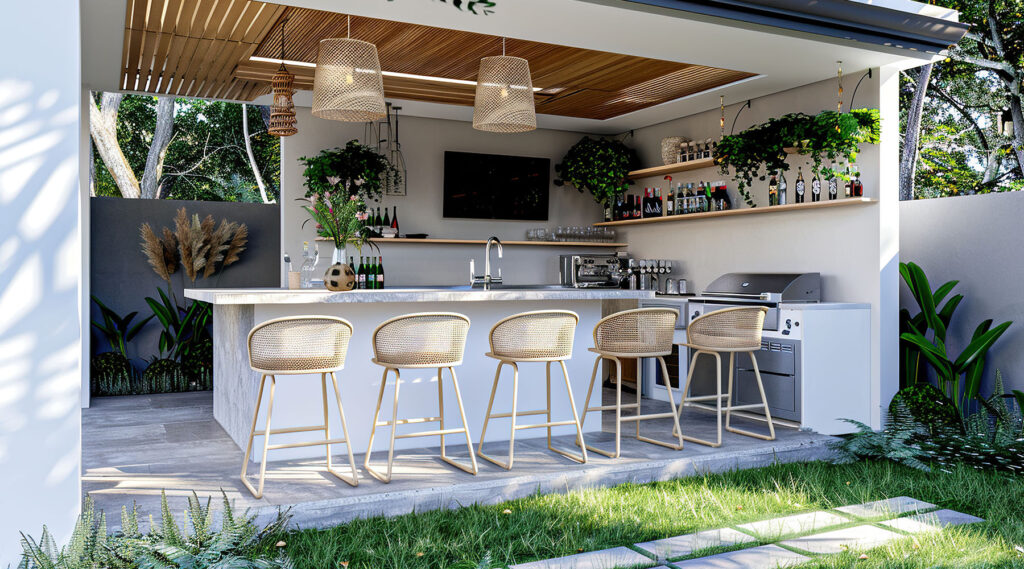 The time required for installation depends on various factors such as the complexity of the design, the size of the kitchen, and the availability of materials. Generally, a basic outdoor kitchen can be installed within a few days, while more elaborate designs may take several weeks. Our team will assess your specific requirements and provide you with a timeframe for the installation – contact us to get started!